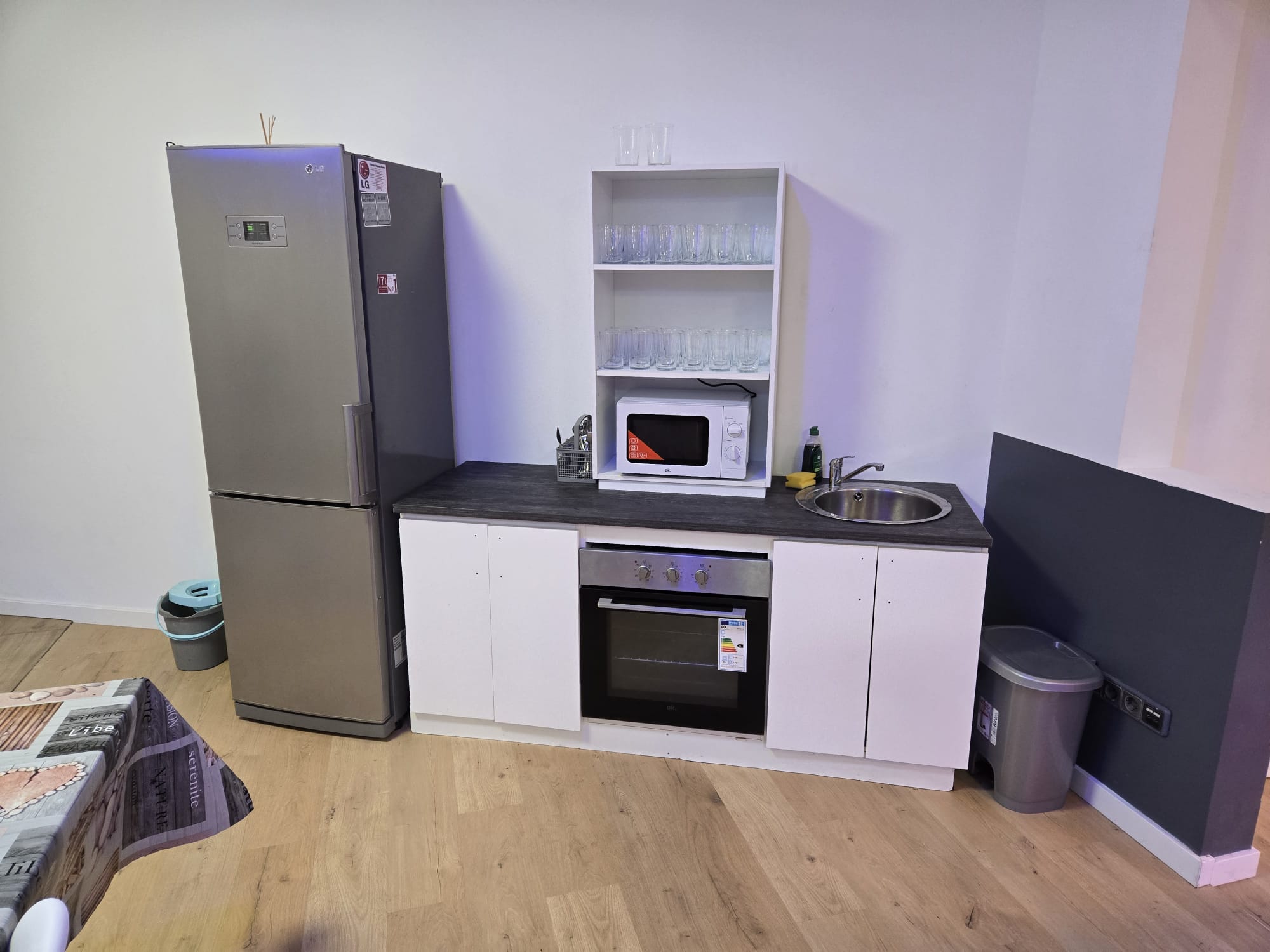 Disponemos de cocina por completo , de 15 m , dotada con horno convencional , plancha industrial y nevera americana muy amplia con hielo picado y normal